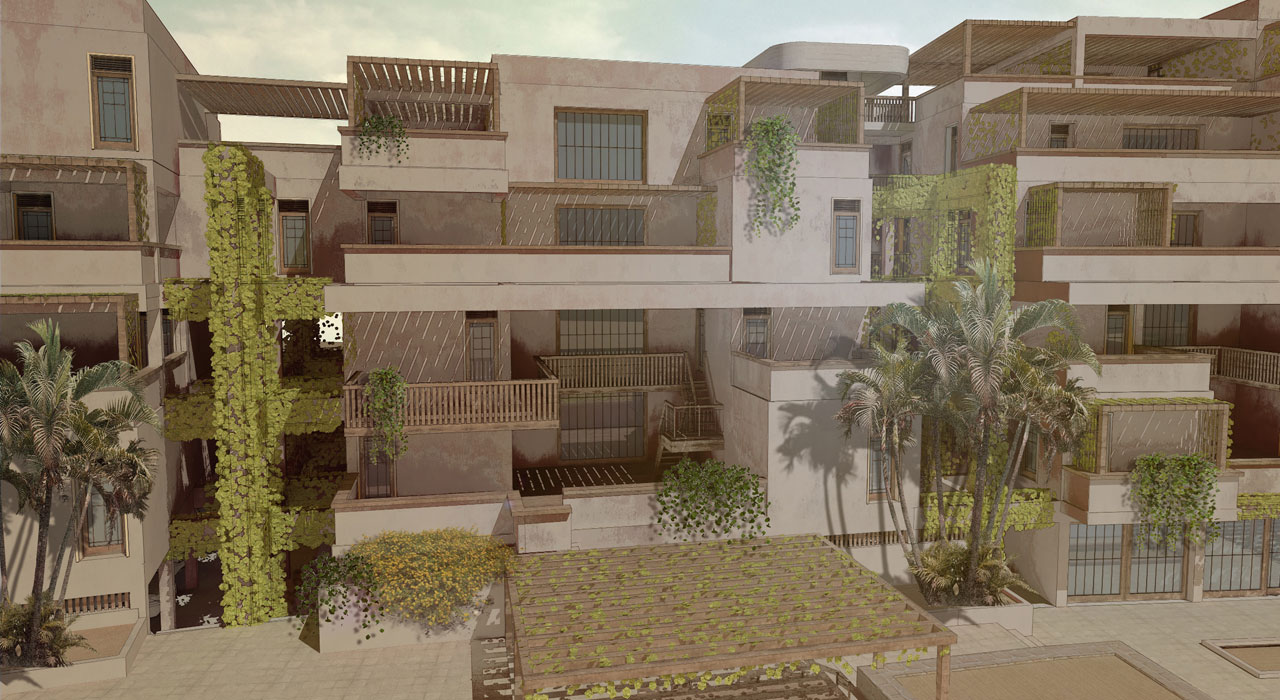 The family, consisting of grandmother, two sisters with their families and a son, wished to replace the villa with a luxury apartment block that would enable housing the whole family as well as apartments for tenants.