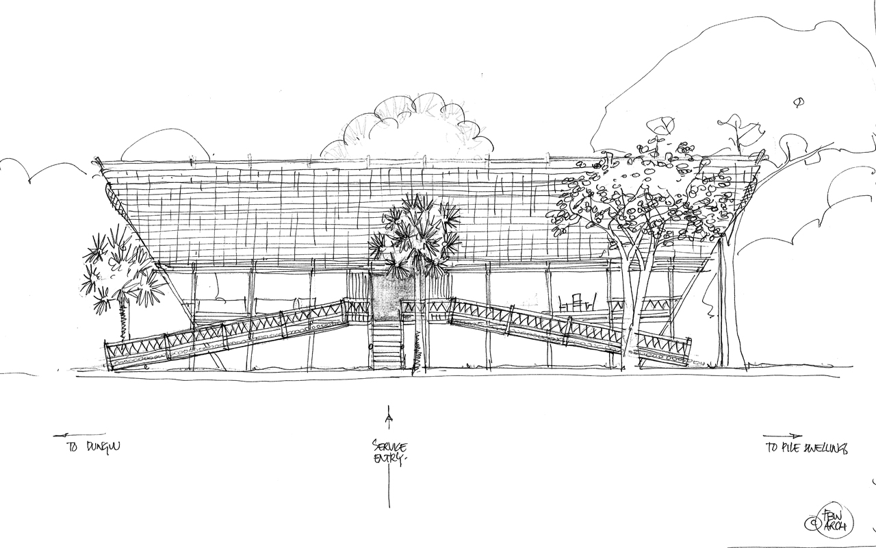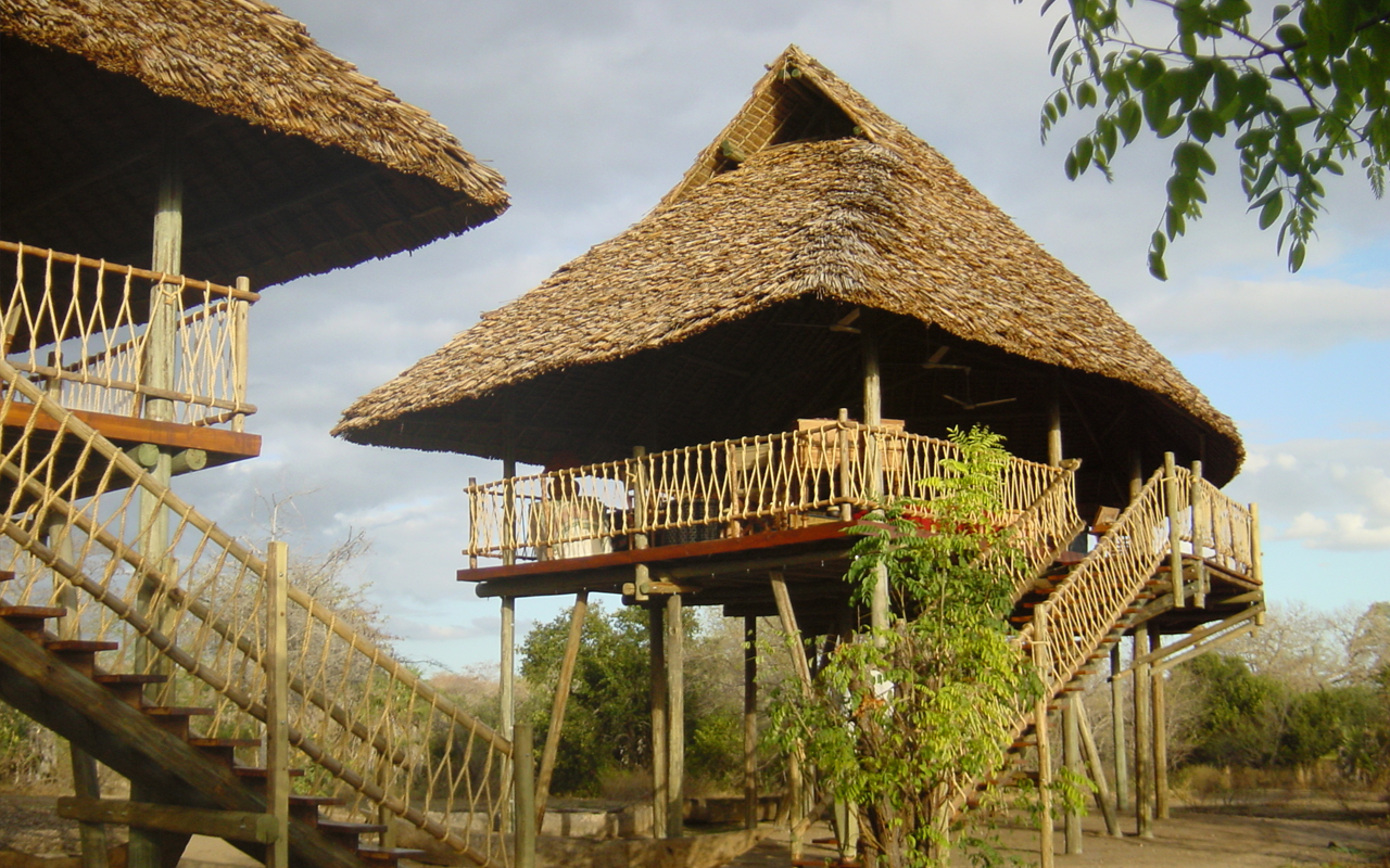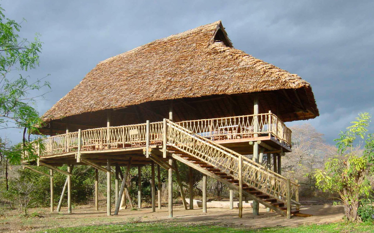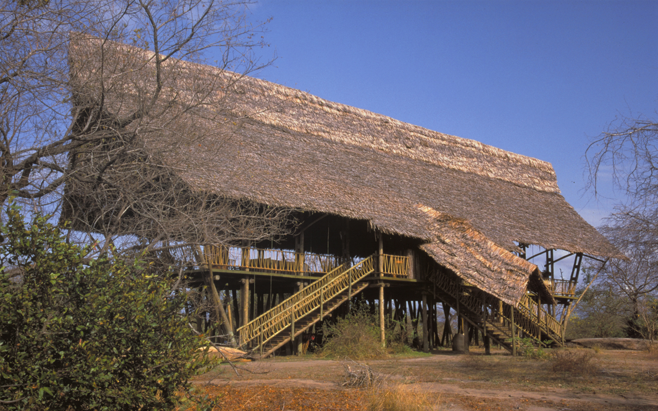 The original camp designed in the early 1990s suffered substantially under the 1997 Al Nino flood and it was decided to relocate the lodge. The lodge is a luxury tented camp, yet the tents are lifted on platforms and shaded with thatched canopy roofs. Raising the accommodation would prevent flooding, whilst improving cross ventilation and preventing ingress of unwanted visitors such as snakes and dudus.